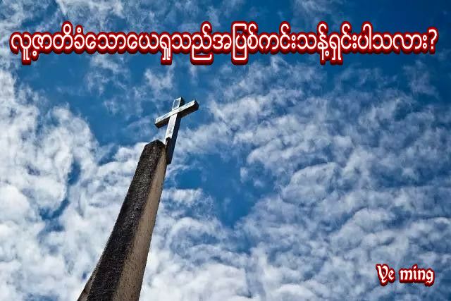 ယေရှုအပြစ်ရှိတယ်ဆိုတဲ့ကျမ်းပိုဒ်လုံးဝလုံးဝရှာမတွေ့ပါ။တချို့ဆရာတွေကယေရှုခရစ်ဟာမာရိကနေဇာတိအပြစ်ပါလာတယ်ဘာညာသွန်သင်နေခြင်းကိုယုံကြည်သူများသေချာဆန်းစစ်ကြပါ။ကားတိုင်ပေါ်မှာကျမှလူသားအားလုံးရဲ့အပြစ်ကိုသူတယောက်ထဲခံသွားခဲ့လို့အပြစ်အကြီးဆုံးသူအဖြစ်အသေခံပြီးလူသားအားလုံးအတွက်စတေးခဲ့တာပါ။