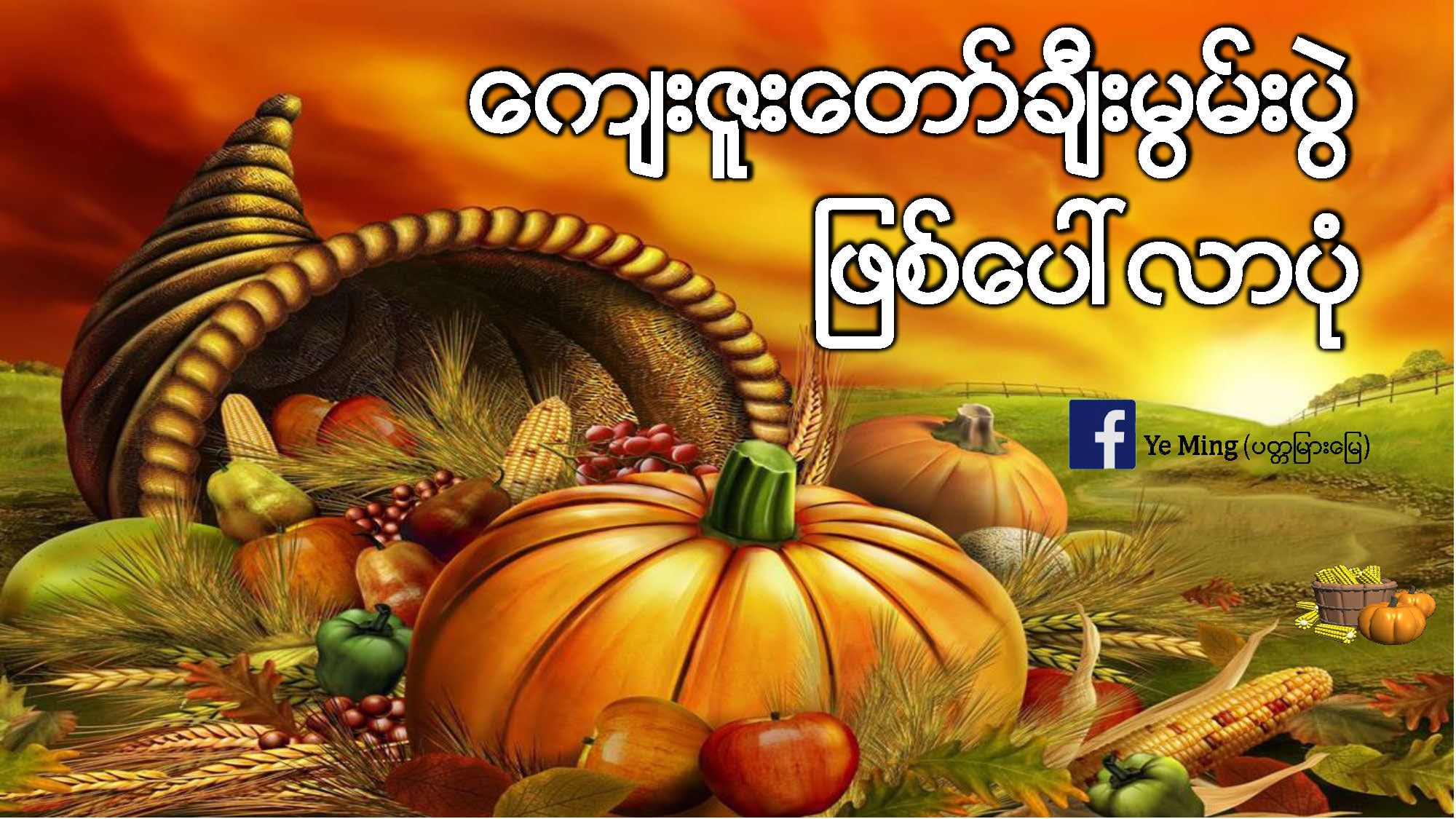 သမိုင်းကြောင်း အစကို ပြန်ပြောရမယ် ဆိုရင် ၁၆၂၀ စက်တင်ဘာမှာ မေဖလားဝါးMayflower လို့ခေါ်တဲ့ သင်္ဘော အငယ်စား လေးက England နိုင်ငံ Plymouth ကနေ ခရစ်ယာန်ဘာသာရေးကိုင်းရှိုင်းသူ ၁၀၂ဦးကို သယ်ဆောင်ပြီး ထွက်လာခဲ့ ပါတယ်။ သူတို့တွေက ကိုယ့်အယူအဆ၊ ကိုယ့်လွတ် လပ်ခွင့်နဲ့ လွတ်လွတ်လပ်လပ် ဘာသာရေး ကိုးကွယ်ချင်တဲ့ Pilgrims တွေဖြစ်ပြီး သူတို့တွေအတွက် နေစရာ ဒေသ အသစ်တစ်ခုကို ရှာဖွေဖို့ ထွက်လာ ကြတာပါ။ ရက်ပေါင်း များစွာ ပင်ပန်းခက်ခဲ ကြမ်းတမ်းစွာ ခရီးနှင် လာပြီးနောက်မှာ သင်္ဘောထဲက လူထက်ဝက် လောက်က သေ ဆုံး ခဲ့ရပြီး ကျန်လူတွေ ကတော့ အခု New England အရပ်ကို ရောက်လာပါတယ်။ အဲ့ဒေသကို ရောက်လာတော့ Abenaki Indian တွေနဲ့ တွေ့ပြီး သူတို့ကို အင်္ဂလိပ်လို နှုတ်ဆက်တဲ့ အခါ အံ့အားသင့် သွားကြပါတယ်။ နောက်တစ်ရက်မှာ အဲ့လူက သူ့အပြင် တခြား native ameri can တစ်ယောက် ဖြစ်တဲ့ Squanto ကိုခေါ်လာပြီး Squanto ကသူတို့ကို ပြောင်းဖူး ဘယ်လို စိုက်ရမလဲ၊ ငါးဘယ်လို ဖမ်းရမလဲ အစရှိ တာတွေ သင်ကြားပေး ခဲ့ပါတယ်။ ဒေသခံ လူမျိုး Wampanoag တွေနဲ့လည်း ပေါင်းသင်း တတ်အောင် သင်ပေးခဲ့ ပါတယ်။ ၁၆၂၁ နိုဝင်ဘာ မှာ Pilgrim တွေရဲ့ ပထမဆုံး ပြောင်းစိုက်ခင်းက အောင်မြင် လာတဲ့အခါ ဘုရားသခင်ကိုကျေးဇူးတင်ဖို့ သူတို့ရဲ့ အုပ်ချုပ်သူ William Bradford ကစားပွဲကြီး တစ်ခုကို ကျင်း ပပေး ခဲ့ပြီး Wampanoag တွေကိုပါ ဖိတ်ကြား ခဲ့ပါတယ်။ ဒါက Thanksgiving Day ရဲ့ပထမဆုံး စားပွဲကြီးလို့ ဆိုကြပါတယ်။