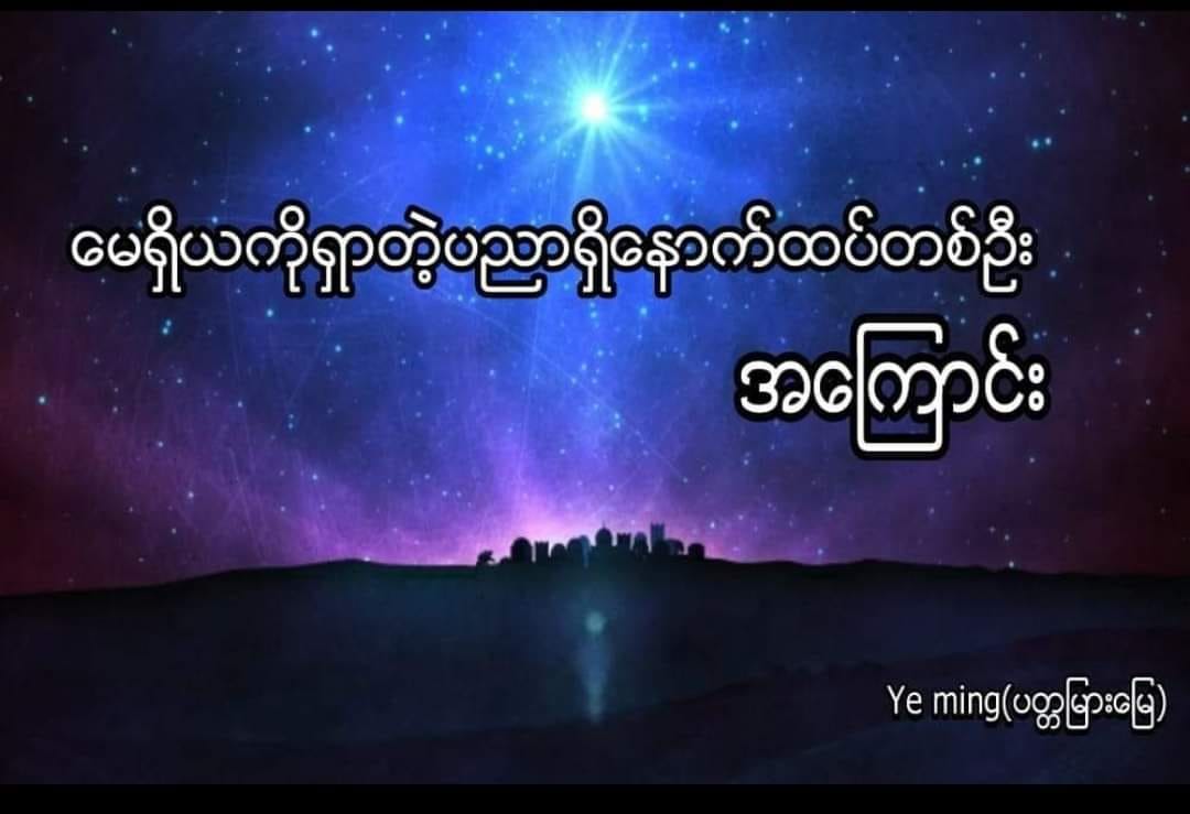 ဘုရားကိုချစ်ခြင်းဆိုတာဘုရားကျောင်းသွားပြီးသီချင်းဆိုဝတ်ပြုတာဘဲမဟုတ်ပါ၊အပြင်လောကလက်တွေ့အသက်တာမှာသူတပါးရဲ့လိုအပ်ချက်ကိုကြည့်ပြီးကိုယ့်တာဝန်ကိုသိတတ်ခြင်းပါ။အငယ်ဆုံးသောသူဆိုတာတွယ်ရာမဲ့တဲ့ဘိုးဘွားတွေ၊မိဘမဲ့ကလေးတွေ၊ဒုက္ခရောက်နေသူတွေ၊အကူညီလိုအပ်နေသူတွေ၊ငတ်ပြတ်နေသူတွေ၊ဒုက္ခိတတွေ အိုး…..အများကြီးအများကြီး….ဒါတွေဟာအငယ်ဆုံးသောသူဘဲ၊အငယ်ဆုံးသောသူပေါ်ပြုခြင်းဟာခရစ်တော်ပေါ်ပြုခြင်းပါဘဲ။ဒါကြောင့်ဒီနှစ်ခရစ္စမတ်မှာအငယ်ဆုံးသောသူကိုမြင်နိုင်ကြပါစေ။