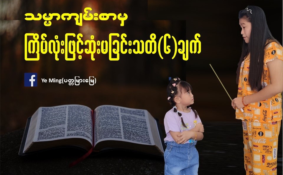 ၆။ချစ်ခြင်းကြိမ်လုံးဖြင့်ဆုံးမခြင်းသည်ဘုရားကိုယုံကြည်လို့ဖြစ်သည်။ခေတ်ကာလဘယ်လောက်တိုးတက်နေပါလေစေ၊ပညာရှင်တွေဘယ်လောက်တားမြစ်ပါလေစေ၊ဘုရားသခင်ပြောထားတဲ့စကားမို့ကြိမ်လုံးသုံးပြီးသားသမီးကိုဆုံးမတတ်ခြင်းသည်ပညာရှင် တွေထက်ဘုရားအပေါ်၁၀၀%ယုံကြည်လို့ဖြစ်ပါသည်။