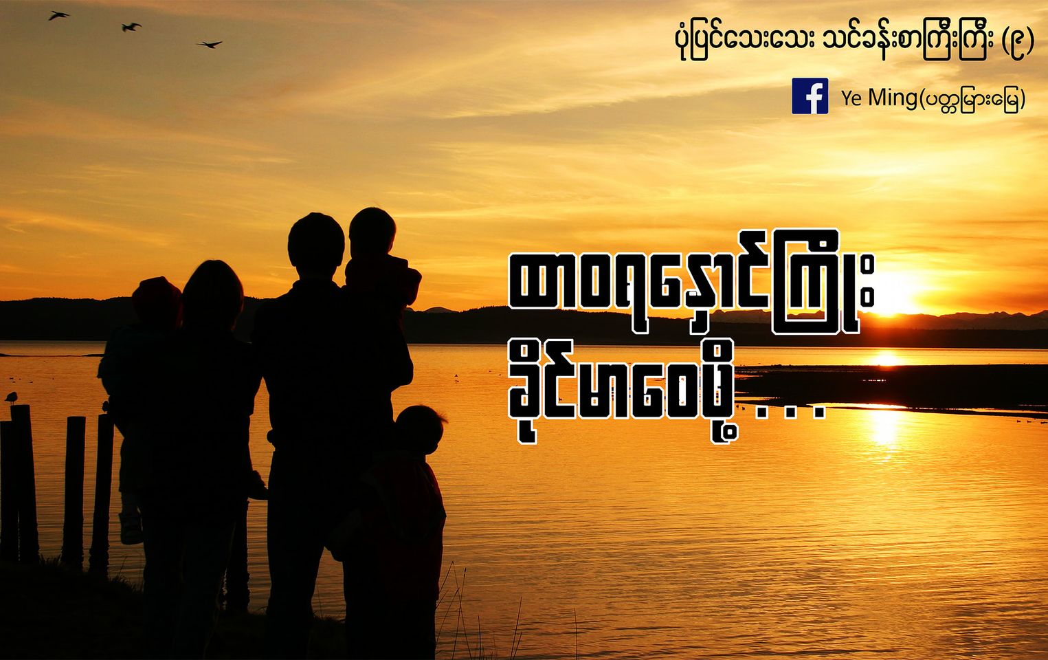 တသက်လုံးရန်ဖြစ်နေဖို့မဟုတ်ပေမယ့်၊ တခါတလေရန်‌ဖြစ်‌နေခဲ့ရင်တောင်နှောင်ကြိုးကတသက်လုံးခိုင်မာနေတာမျိုးပါ။ပြောစရာအပြစ်အများကြီးရှိနေပေမယ့်၊ချစ်ခြင်းမေတ္တာနဲ့ဖုံးအုပ်တတ်ခြင်းဟာနှောင်ကြိုးကိုပိုမြဲစေပါတယ်။အပြစ်ဘဲကြည့်ရင်အပြစ်ဘဲမြင်ပါမယ်။ကောင်းကွက်ကိုလည်းအမြဲမြင်ပေးတတ်ဖို့လိုပါတယ်။