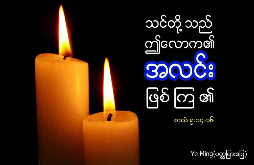 အလင်းဆိုတာလူသားတစုလုံးအတွက်အင်မတန်အရေးကြီးပြီးအသုံးဝင်ပါတယ်၊အလင်းမရှိရင်လူသားတွေကောတိရိစ္ဆာန်တွေပါသွားလာလှုပ်ရှားဖို့ခက်ခဲပါလိမ့်မယ်။ဒါကြောင့်လဲဘုရားသခင်ဟာအလင်းကိုအဦးဆုံးဖန်ဆင်းပေးခဲ့တာပါ။ဘယ်လောက်မှောင်နေတဲ့နေရာဖြစ်ပါစေ၊အလင်းရောက်လာရင်တော့အမှောင်တွေထွက်ပြေးပျောက်ကွယ်ရစမြဲပါ၊ယနေ့ယုံကြည်သူတွေဟာလောကရဲ့အလင်းဖြစ်ပါတယ်၊လမ်းမှားနေတဲ့လောကလူသားတွေကိုလင်းစေပြီး၊သူတို့ဟာပျက်စီးရာလမ်းကိုလျှောက်သွားနေမှန်းမီးမောင်းထိုးပြပါ။ယေရှုခရစ်တော်မှလွဲပြီးအခြားလမ်းမရှိဘူးဆိုတာကိုအလင်းပြဖို့ယုံကြည်သူတိုင်းလုပ်ဆောင်ကြရမှာဖြစ်ပါတယ်။