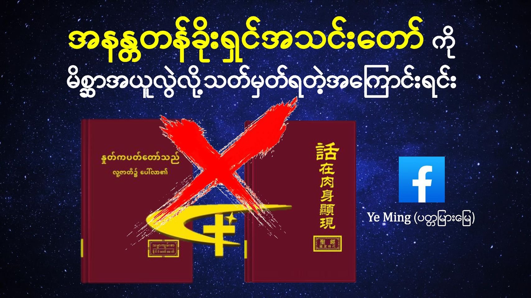 ၁၁။နိုင်ငံတော်ခေတ်ရောက်ပြီမို့ဒုတိယအကြိမ်လူ့ဇာတိလာခံတဲ့အနန္တတန်ခိုးရှင်(တရုတ်မ)ကိုလက်မခံရင်ကယ်တင်ခြင်းမရဘူးလို့ဆိုခြင်း။ယေရှုနာမ မသုံးရတော့ဘဲဒီအနန္တတန်ခိုးရှင်တရုတ်မရဲ့နာမနဲ့ဆုတောင်းရမည်ဟုသွန်သင်ခြင်း။
