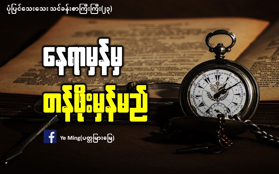 “ဒီမှာငါ့မြေး၊လူဆိုတာလဲအခုဒီနာရီအတိုင်းပါဘဲ၊နေရာမှန်သွားမှတန်ဖိုးမှန်လာမှာဖြစ်တယ်၊နေရာမမှန်ရင်ကိုယ့်ကိုတန်ဖိုးထားရကောင်းမှန်းဘယ်သူမှသိမှာမဟုတ်သလို၊နေရာမှန်မှာမနေရင်ကိုယ့်တန်ဖိုးလည်းပေါ်လွင်လာမှာမဟုတ်ပါဘူး”။