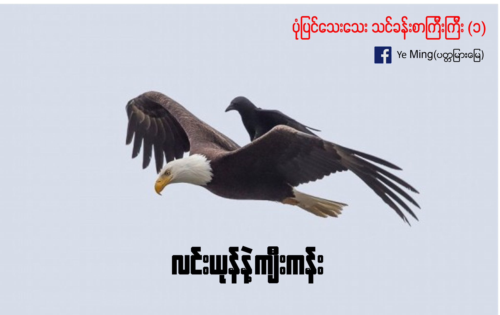 လင်းယုန်ငှက်ဟာမိုးမြင့်ပေါ်မှာပျံသန်းနေတဲ့အချိန်၊ကျီးကန်းနဲ့သွားတိုးပါတယ်။ကျီးကန်းကလင်းယုန်ရဲ့ပျံသန်းနိုင်မှုကိုမနာလိုတဲ့အတွက်လင်းယုန်ဆီအရောက်ပျံသန်းသွားပြီးကျောဖက်ကနေနူတ်နဲ့ဆိတ်ပါတော့သတဲ့။ဒါကိုလင်းယုန်ငှက်ကကျီးကန်းကိုပြန်မတိုက်ခိုက်ဘဲအမြင့်ကိုဆက်ပျံသန်းပါတယ်၊ပြန်တိုက်ခိုက်ဖို့အချိန်မဖြုန်းနိုင်တာပါ။ဒီလိုနဲ့အမြင့်ကိုပျံသန်းရင်းအထိပ်ဆုံးအမြင့်ဆုံးကိုရောက်လာတဲ့အခါမှာတော့ကျီးကန်းဟာအလိုလိုနေရင်းအမြင့်မှာနေမခံနိုင်လို့ပြုတ်ကျသွားပါတော့တယ်။