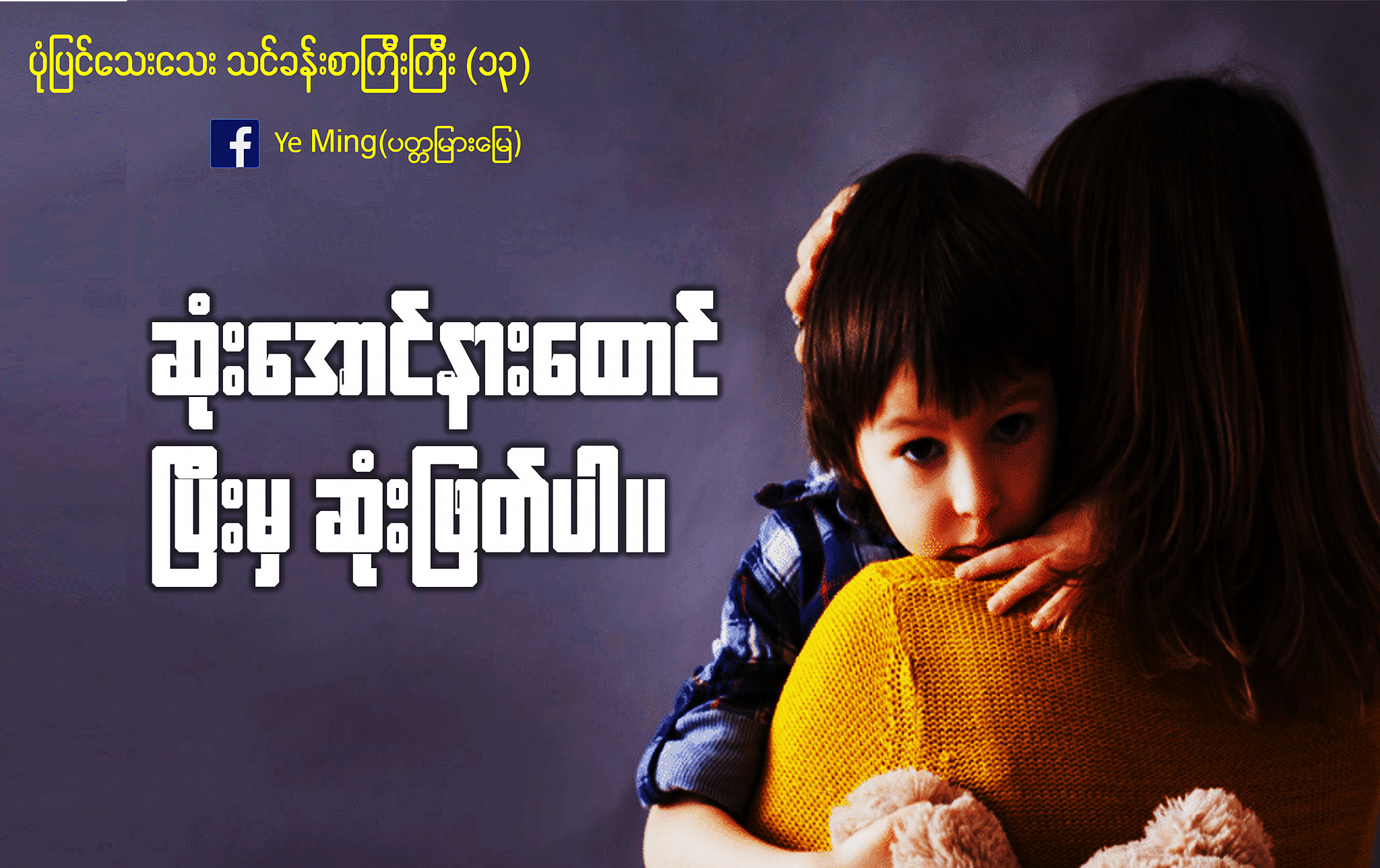 သားလေးကိုဒီလိုလုပ်တာမကောင်းကြောင်းနဲ့ဘယ်လိုလုပ်သင့်ကြောင်းသွန်သင်ဖို့စိတ်ထဲကနေစဉ်းစားနေတုန်းသားငယ်လေးထပ်ပြောလာသောစကားကြောင့်အမေမှာမျက်ရည်လေးဝဲခဲ့ရပါသည်။