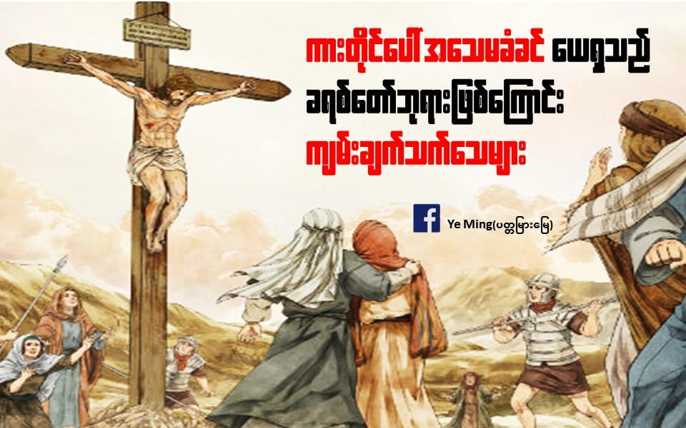 ၁၂။ရောမ၅:၆ ငါတို့သည် အကျိုးနည်းရှိစဉ်တွင် အချိန်တန်မှ “ခရစ်တော်”သည် မတရားသောသူတို့အတွက်ကြောင့် အသေခံတော်မူ၏။…..ငါတို့သည် အပြစ်ရှိစဉ်ပင်၊ “ခရစ်တော်”သည် ငါတို့အတွက်ကြောင့် အသေခံတော်မူသည်ဖြစ်၍၊ ဘုရားသခင်သည် ငါတို့ကို အဘယ်မျှလောက် ချစ်တော်မူသည်ကို ငါတို့အား ထင်ရှားစွာပြတော်မူ၏။