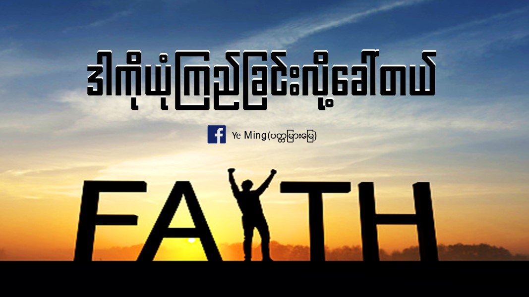 သခင်ယေရှုဘုရားကိုယုံကြည်ခြင်းဆိုသည်မှာလည်းဒီအတိုင်းပါဘဲ။မဖြစ်သေးတာကိုဖြစ်ပြီလို့အတည်ပြုတာ၊မရောက်သေးတာကိုရောက်မယ်လို့သေချာတာ၊မရသေးတာကိုရမယ်လို့အကြွင်းမဲ့စိတ်ချတာ။မပြည့်စုံ သေးတာကိုပြည့်စုံမယ်လို့အတိကျယုံကြည်တာ။ဒါယုံကြည်ခြင်းပါဘဲ။အာမင်။