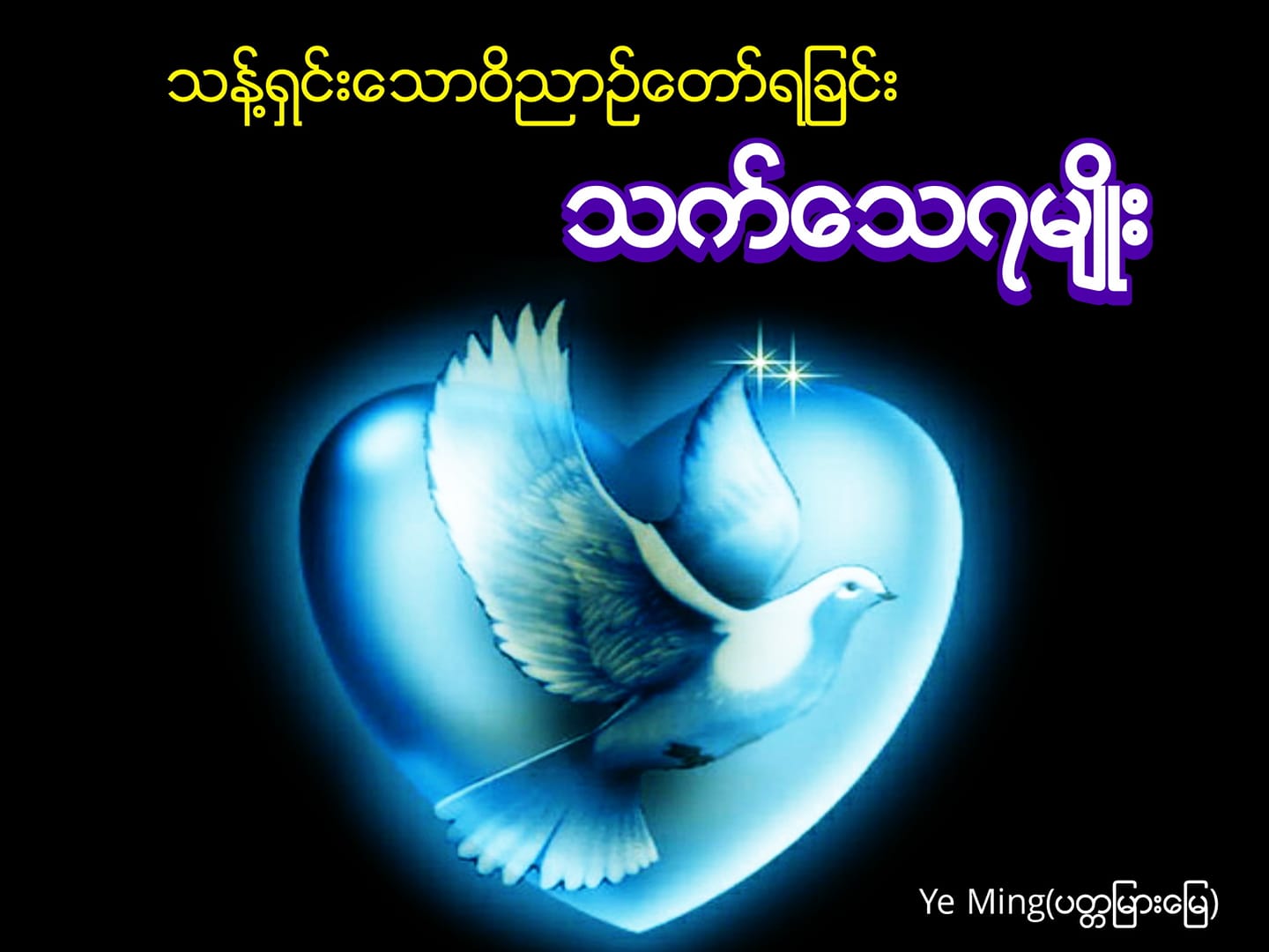 ရှင်ယောဟန်ခရစ်ဝင် ၁၄:၁၆- ၁၇ခမည်းတော်သည် သမ္မာတရားကိုပြသော ဝိညာဉ်တော်တည်းဟူသော တပါးသောဥပဇ္ဈယ်ဆရာကို သင်တို့နှင့်အတူ အစဉ်မပြတ်တည်နေစေခြင်းငှါ သင်တို့အားပေးတော်မူမည်။ထိုဝိညာဉ်တော်ကို လောကီသားတို့သည် မသိမမြင်သောကြောင့် မခံမယူနိုင်ကြ။ ထိုဝိညာဉ်တော်သည် သင်တို့နှင့်အတူတည်နေ၍၊ သင်တို့၌ ရှိတော်မူသောကြောင့် သင်တို့သိရကြ၏။